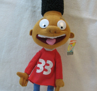 Nickelodeon Hey Arnold! Gerald Official Licensed 19" Plush. 19" tall. Nanco Official Licensed Product. Gerald a popular cartoon character from Hey Arnold. Hang tag says 2002 Viacom. Tush tag says 2001 Viacom.