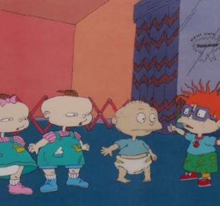 Nickleodeon's Rugrats Original Animation Cel Group. This is an amazing cel! Multi-cel production cel setup of Phil & Lil, Tommy and Chucky presented on a studio prepared laser background. Custom Matted and ready to frame.